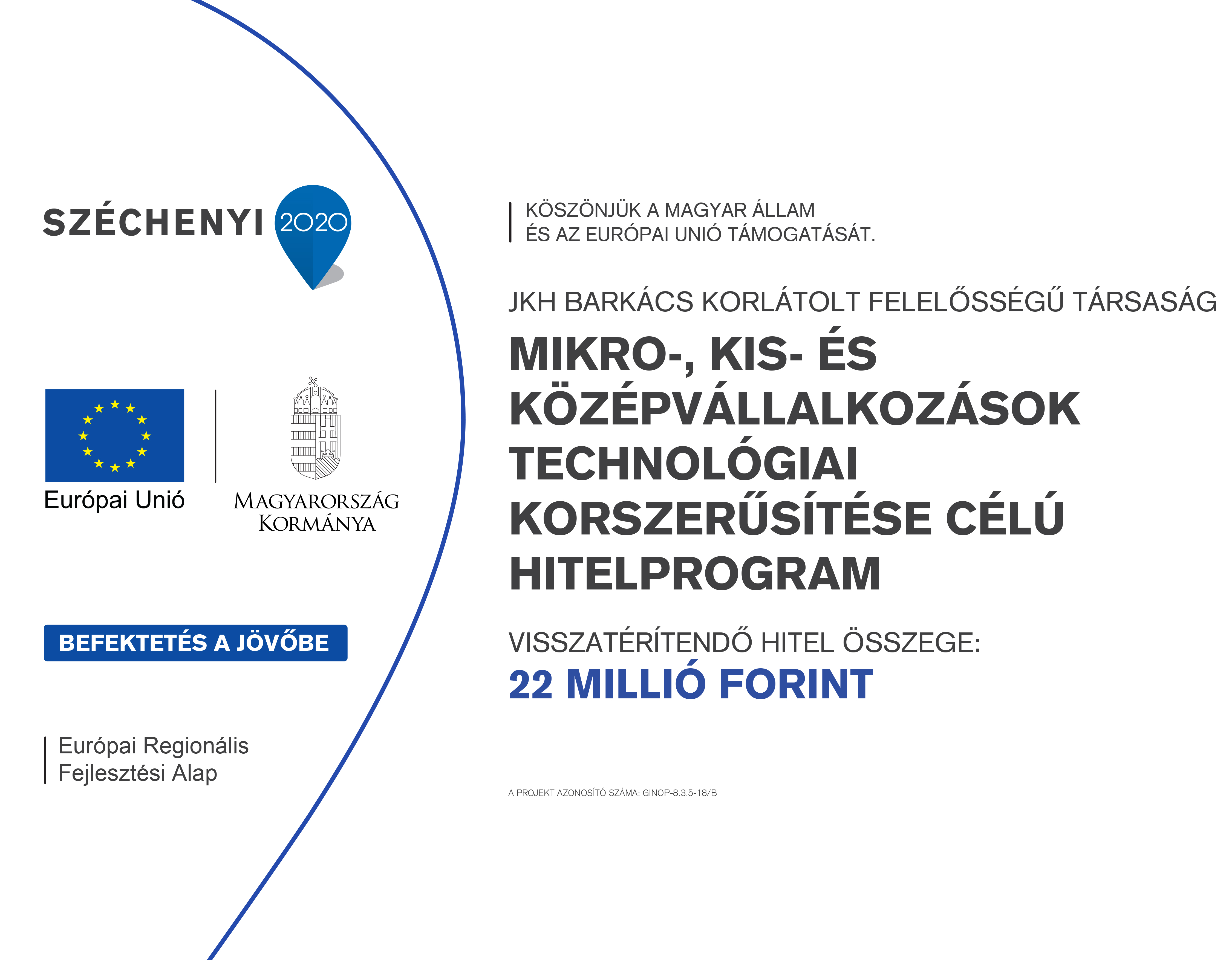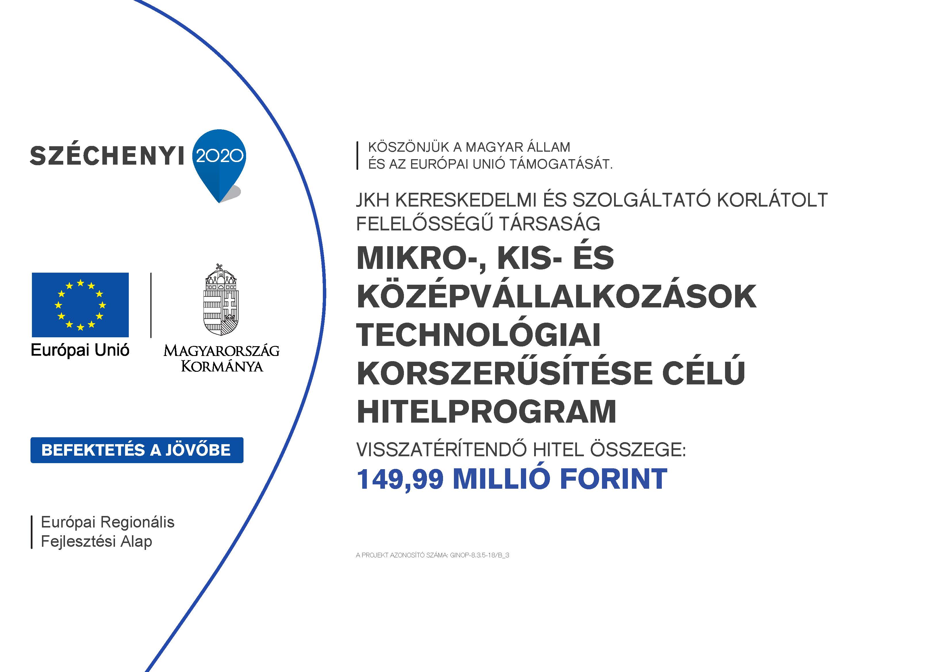- a projekt címe: MIKRO-, KIS- ÉS KÖZÉPVÁLLALKOZÁSOK TECHNOLÓGIAI KORSZERŰSÍTÉSE CÉLÚ HITELPROGRAM