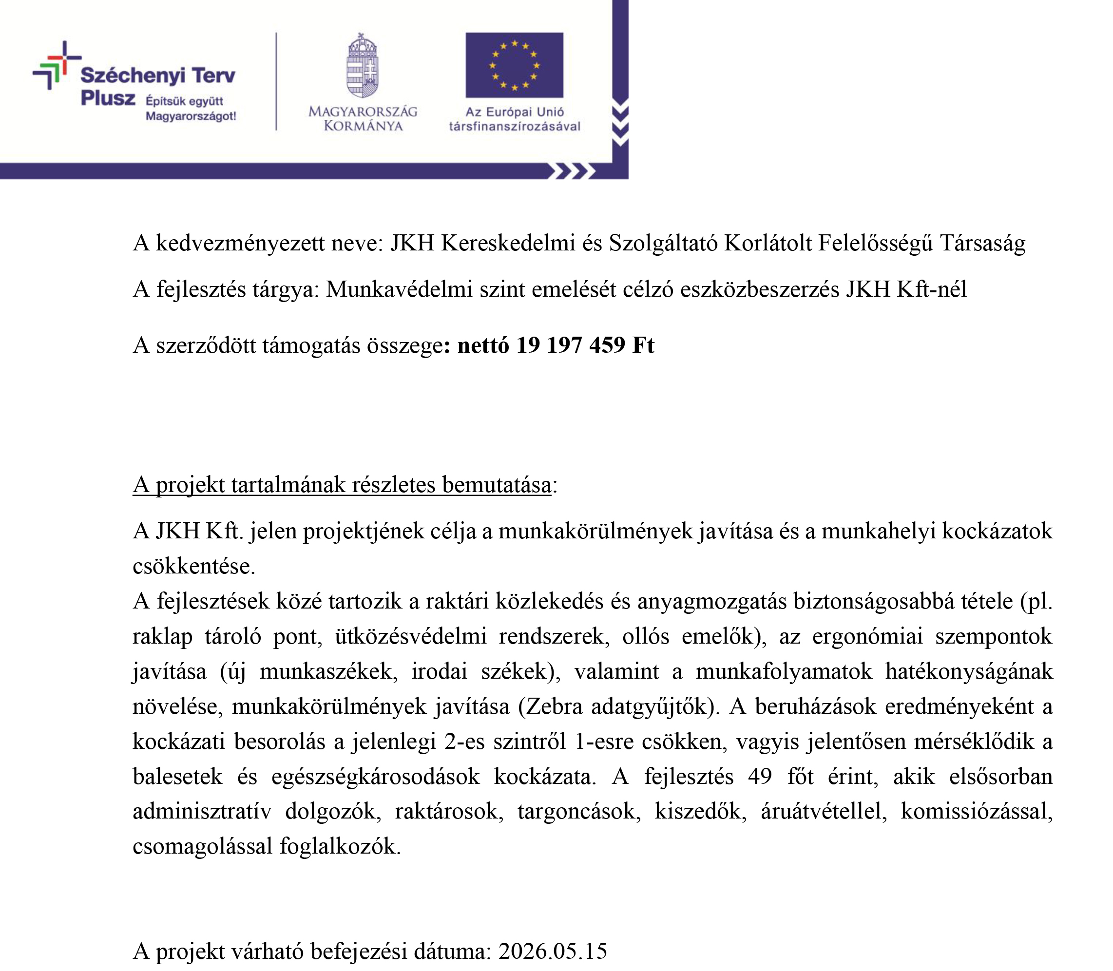 - A kedvezményezett neve: JKH KERESKEDELMI ÉS SZOLGÁLTATÓ KORLÁTOLT FELELŐSSÉGŰ TÁRSASÁG